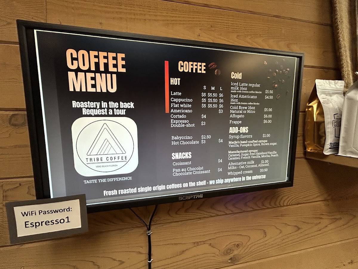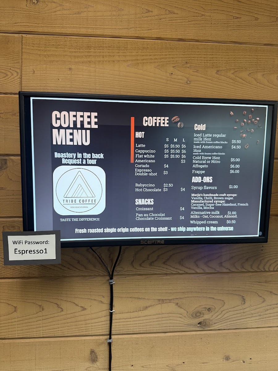 Tribe Coffee, Vero Beach - Roastery, Espresso Bar Menu